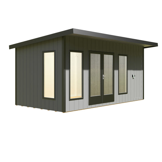 Shire Cali 12' 5" x 12' Pent Garden Office with Storage - Premium Wax Board