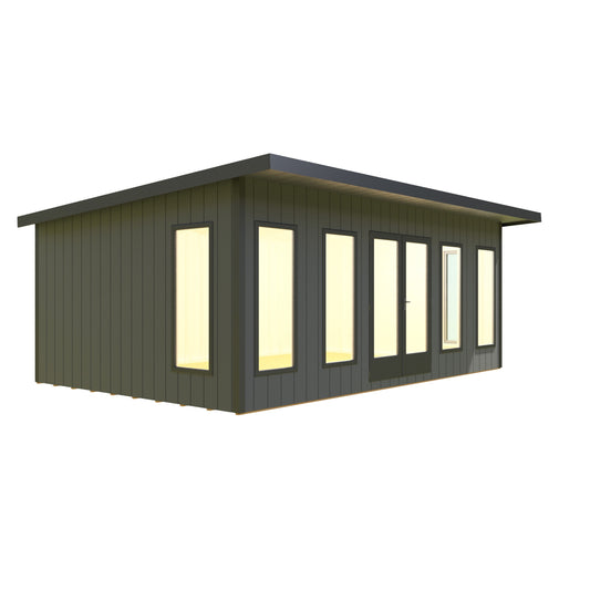 Shire Cali 12' 5" x 19' Pent Garden Office with Storage - Premium Wax Board