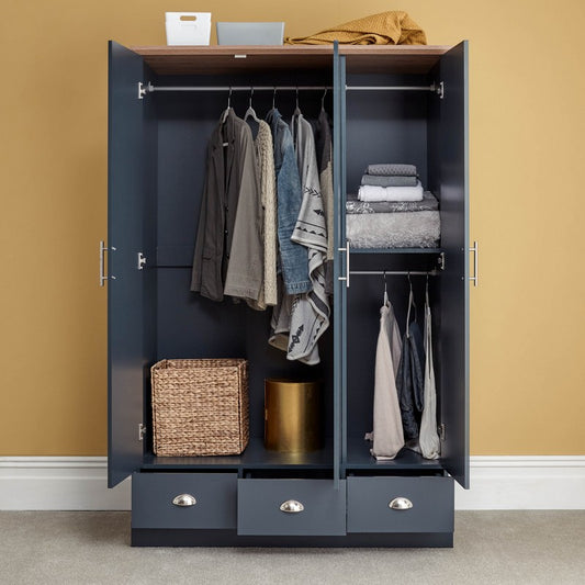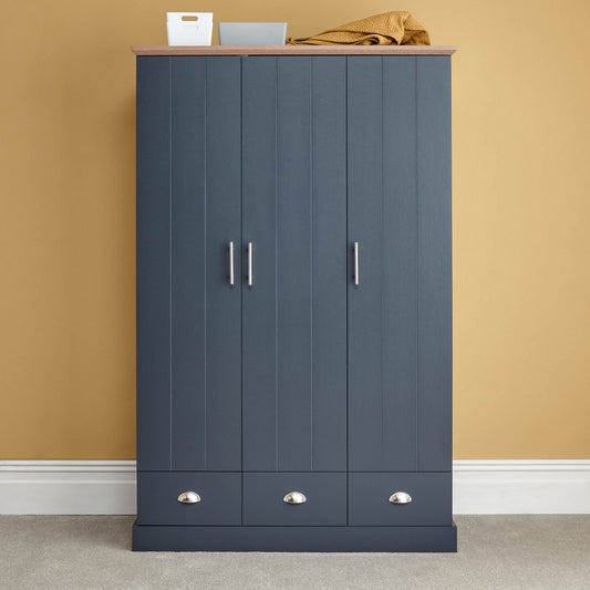 Kendal Tall Wardrobe Blue 3 Doors 1 Shelf 3 Drawers
