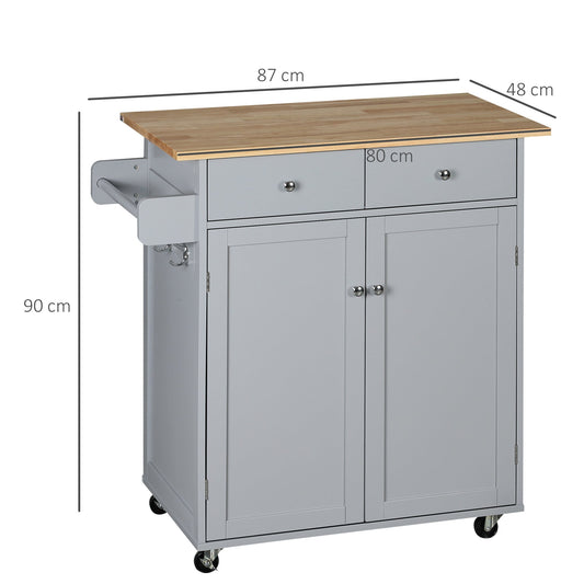 Kitchen Trolley Utility Cart on Wheels with Rubberwood Worktop