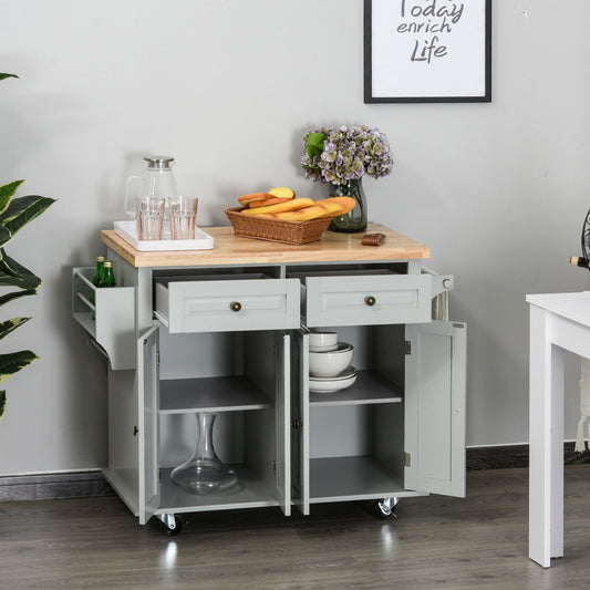Homcom Kitchen Island with Storage Rolling Kitchen Serving Cart with Rubber Wood Top Towel Rack Storag...