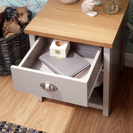 Lancaster Side Table Grey 1 Shelf 1 Drawer
