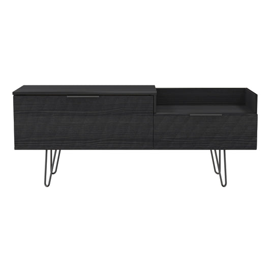 Harlequin TV Unit Black 1 Shelf 2 Drawers 128cm