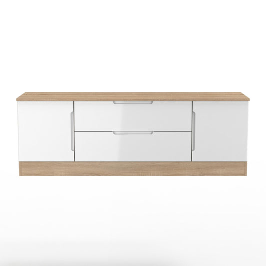 Milan TV Unit White & Oak 2 Drawers 2 Doors 144cm