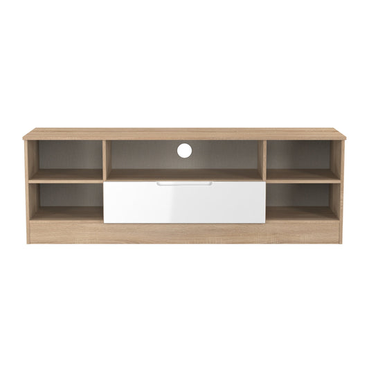 Milan TV Unit White & Oak 5 Shelves 1 Drawer 144cm