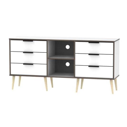 Drayton TV Unit Natural & White 2 Shelves 6 Drawers