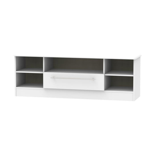 Weybourne TV Unit White 5 Shelves 1 Drawer
