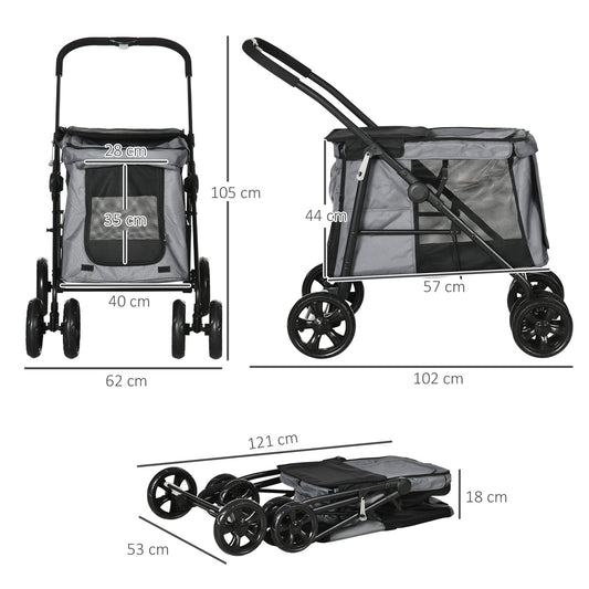 PawHut Dog Stroller Pet Cat Travel Pushchair One-Click Fold Trolley Jogger with EVA Wheels Brake Baske...