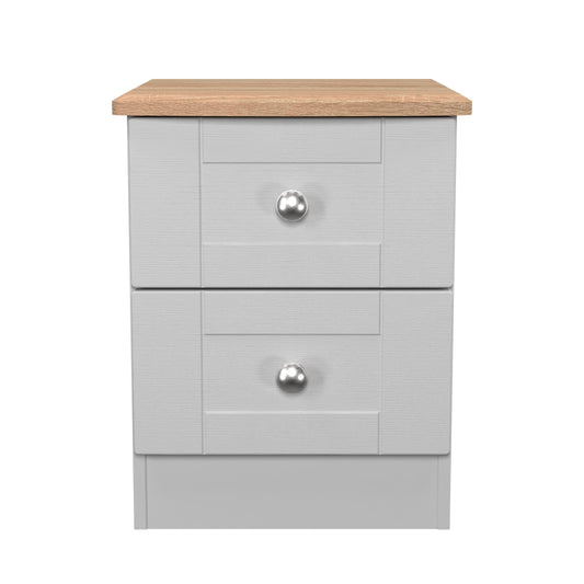 Sussex Bedside Table Grey & Light Oak 2 Drawers 40cm