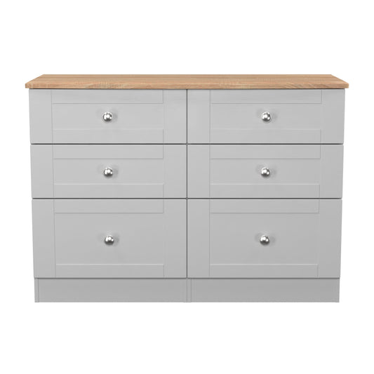 Sussex Large Chest of Drawers Grey & Light Oak 6 Drawers 112cm
