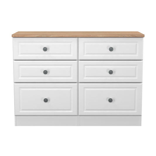Norfolk Large Chest of Drawers White & Light Oak 6 Drawers 110cm