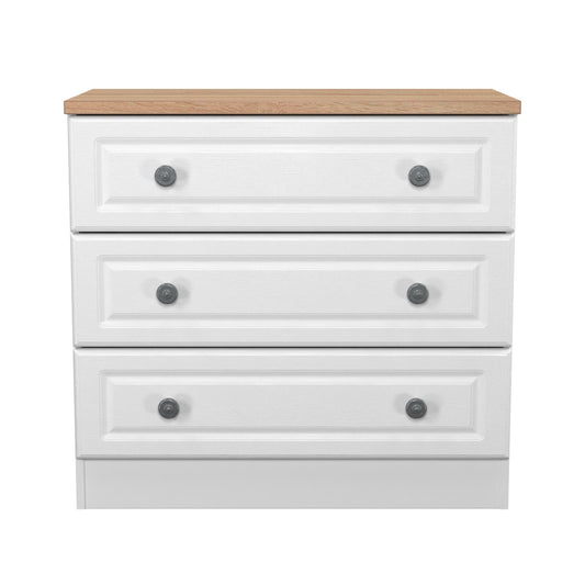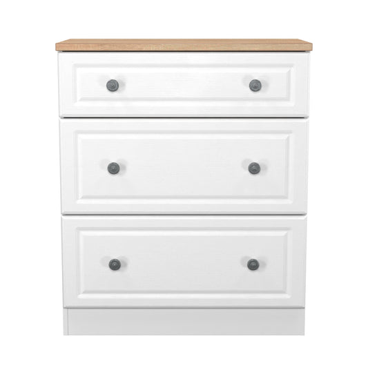 Norfolk Chest of Drawers White & Light Oak 3 Drawers 74cm