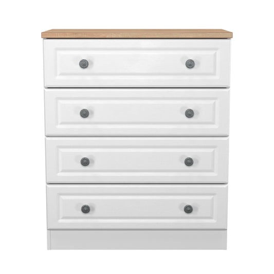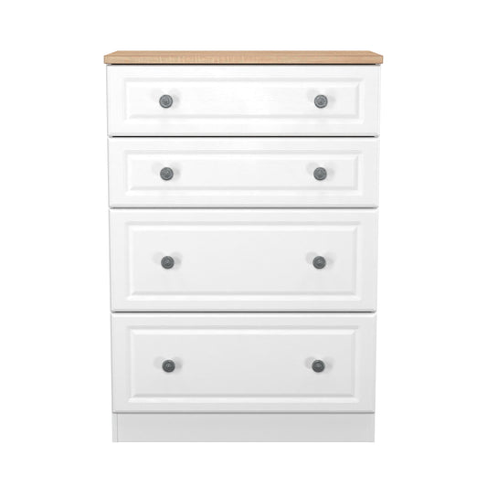 Norfolk Chest of Drawers White & Light Oak 4 Drawers 74cm