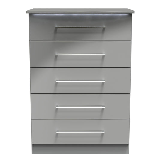 Paris Tall Chest of Drawers Grey 5 Drawers 77cm