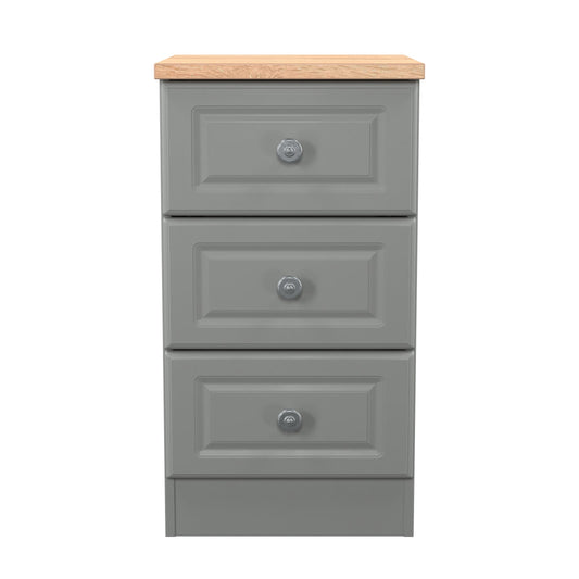 Norfolk Bedside Table Grey & Light Oak 3 Drawers 37cm