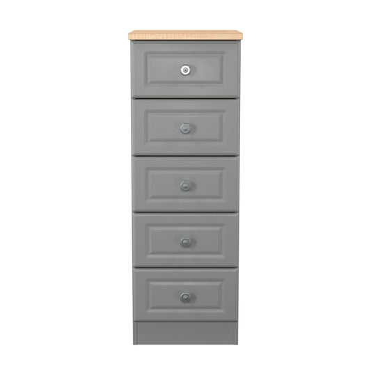 Norfolk Bedside Table Grey & Light Oak 5 Drawers 37cm