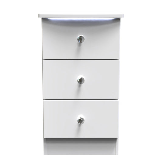 Lumiere Bedside Table with LED lights White 3 Drawers 70cm