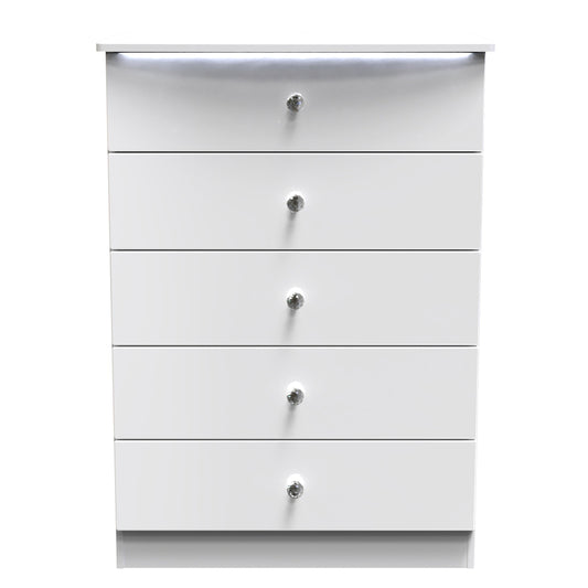 Lumiere Tall Chest of Drawers with LED lights White 5 Drawers 108cm