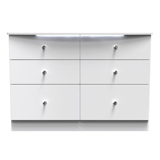 Lumiere Large Chest of Drawers with LED lights White 6 Drawers 112cm