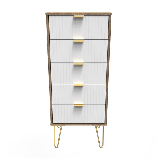 Linear Tall Tallboy White & Oak 5 Drawers 109cm