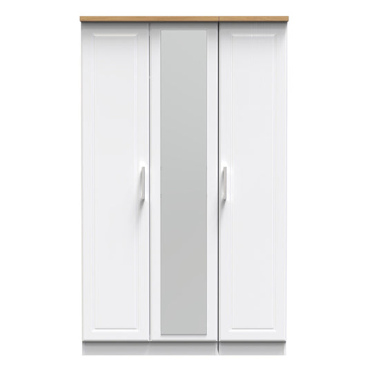 Kent Tall Mirror Wardrobe White & Oak 1 Shelf 182cm