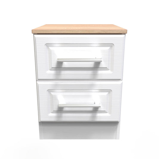 Kent Bedside Table White & Oak 2 Drawers 51cm