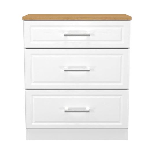Kent Chest of Drawers White & Oak 3 Drawers 74cm