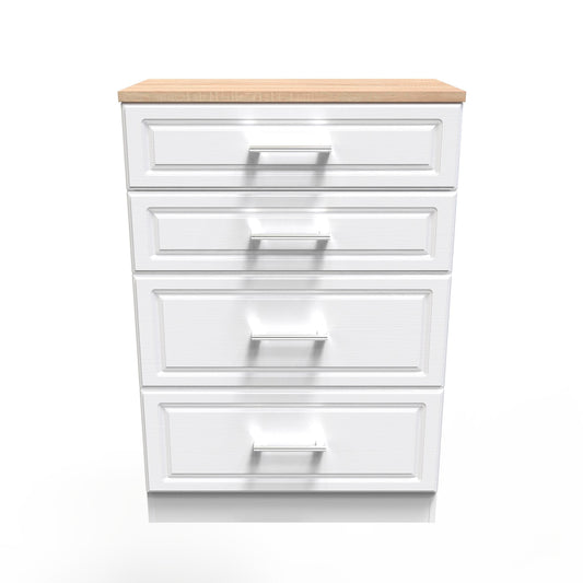 Kent Chest of Drawers White & Oak 4 Drawers 89cm
