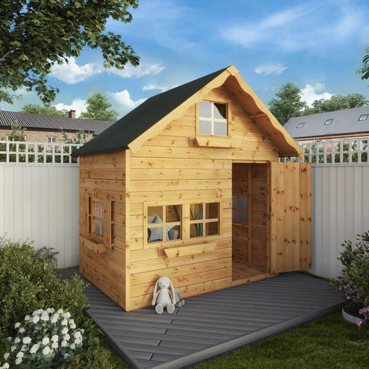 Shire Salcey 5' 10" x 6' 11" Apex Children's Playhouse - Premium 28mm Cladding Log Clad