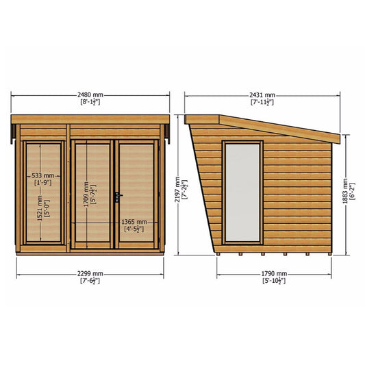 Shire Drayton 7' 3" x 11' 9" Reverse Apex Garden Studio - Premium Dip Treated Tongue & Groove