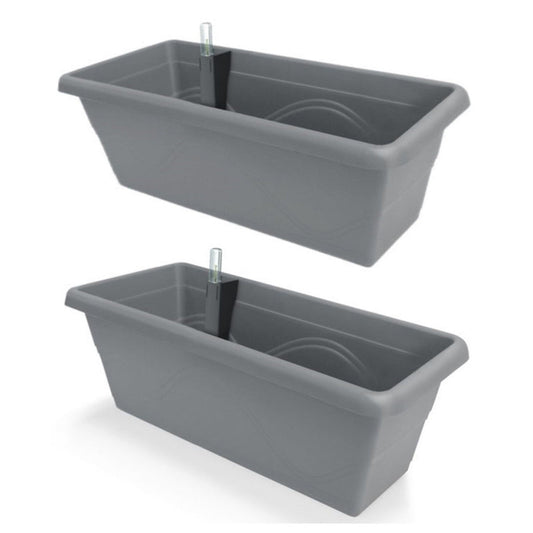 Gardenico Self-Watering Planter For Balconies 40cm - Anthracite - Twin Pack