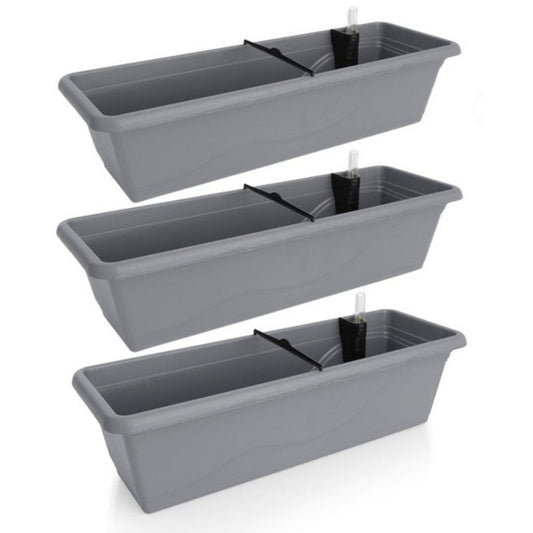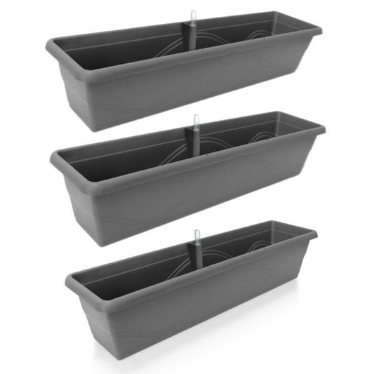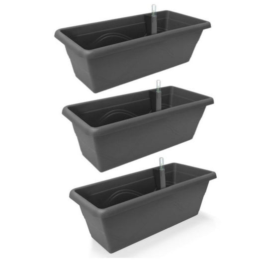 Gardenico Self-Watering Planter For Balconies 40cm - Anthracite - Triple Pack