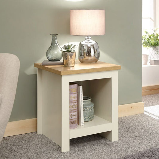 Linear Side Table White & Light Oak 1 Drawer 40cm