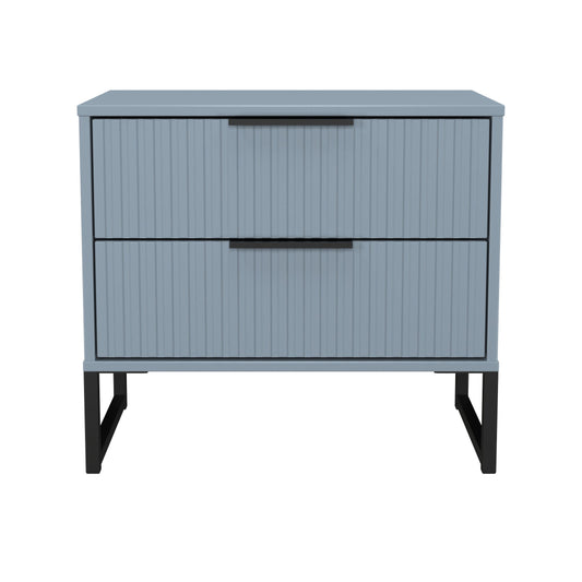 Fluted Side Table Light Blue 2 Drawers 60cm