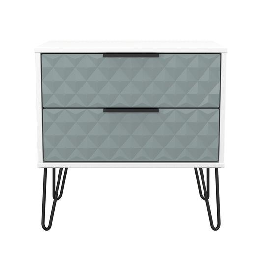 Harlequin Side Table Teal & White 2 Drawers 60cm