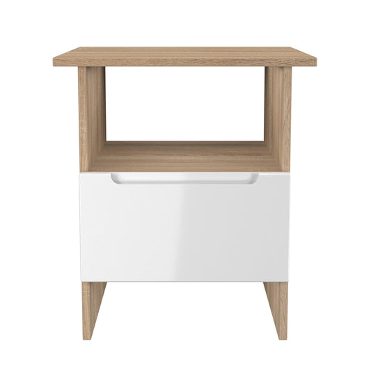 Milan Side Table White & Oak 1 Shelf 1 Drawer 50cm