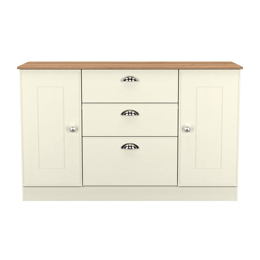 Victoria Large Sideboard Cream & Light Oak 2 Doors 3 Drawers 128cm