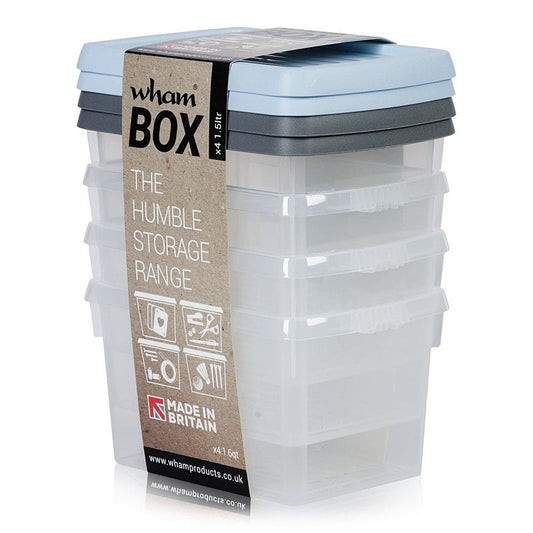 4 x Plastic Storage Boxes 1.5 Litres - Multi Coloured by Wham