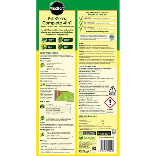 Miracle Gro 12.6kg 4-in-1 Lawn Feed Complete - 360 Square Metres Coverage