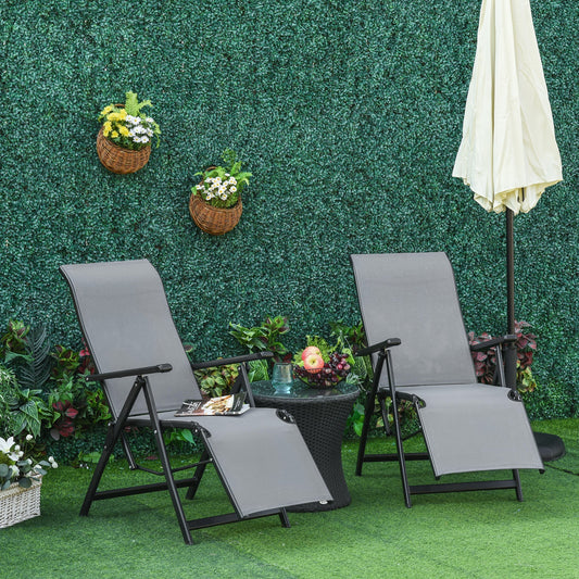 Set of 2 S-shaped Foldable Lounge Chair Sun Lounger Reclining Outdoor Chair for Patio Beach Garden Grey