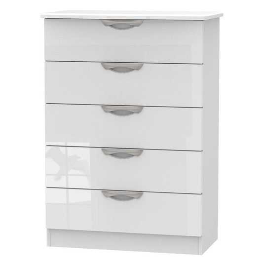 York Tall Chest of Drawers White 5 Drawers 74cm