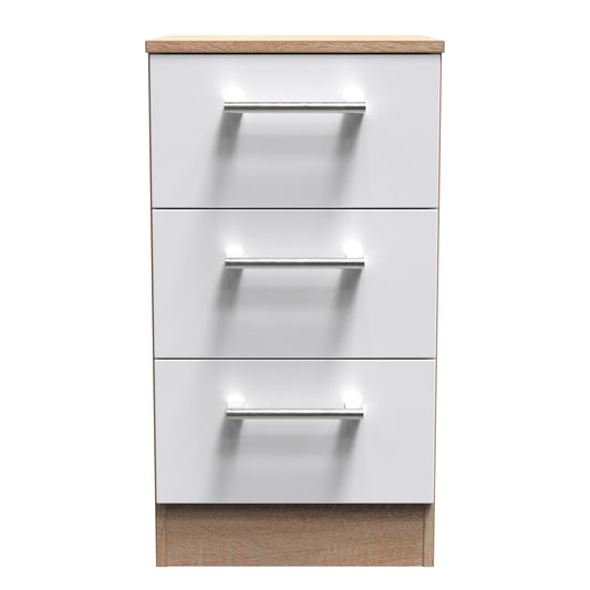 Devon Chest of Drawers White & Oak 3 Drawers 70cm