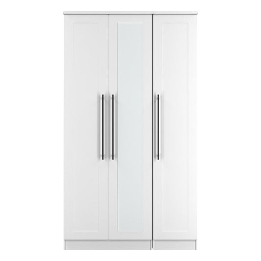Balmoral Tall Mirror Wardrobe White 3 Doors 2 Shelves 182cm
