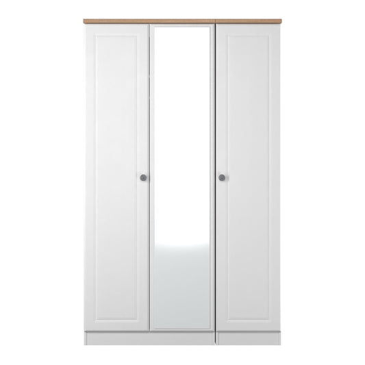 Norfolk Tall Mirror Wardrobe White & Light Oak 1 Shelf 111cm