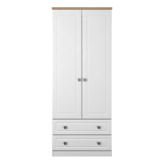 Norfolk Tall Wardrobe White & Light Oak 2 Drawers 74cm