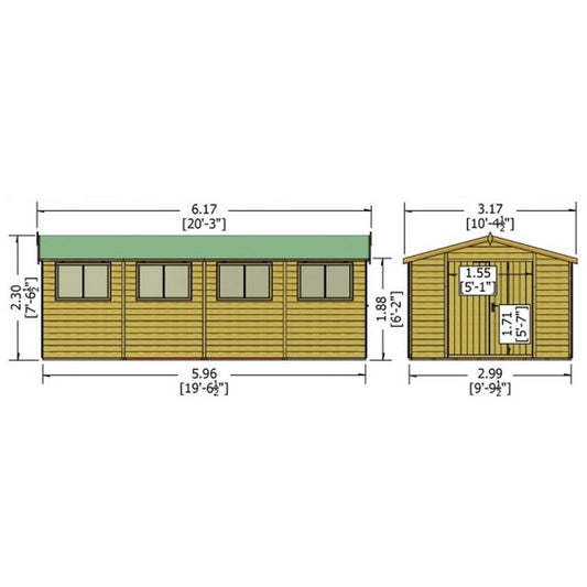 Shire Workspace 10' 4" x 20' 2" Apex Shed - Premium Coated Shiplap