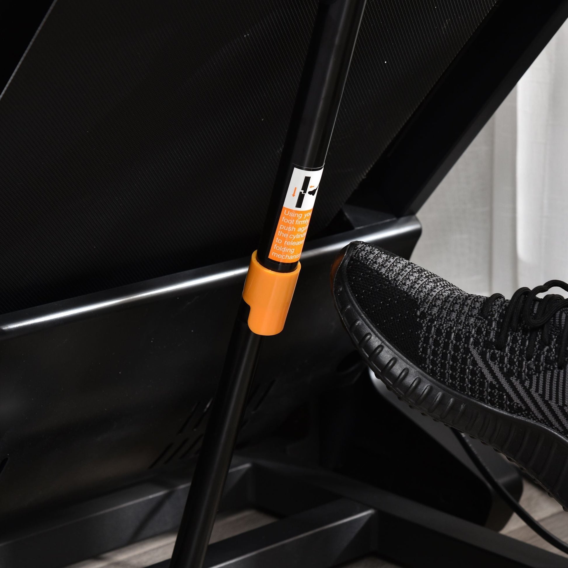 Want to stay active at home, without leaving the door? Then get this foldable treadmill from HOMCOM. The walking treadmill goes up to 12 km/h, giving you plenty of speed for a solid workout, with 12 modes to switch up your routine. The running mat angle can be positioned to three different angles. LED screen shows time, speed, distance – easy to keep track of your progress. Safety key stops walking machine immediately when pulled out. The compact treadmill completed with two wheels on the base.