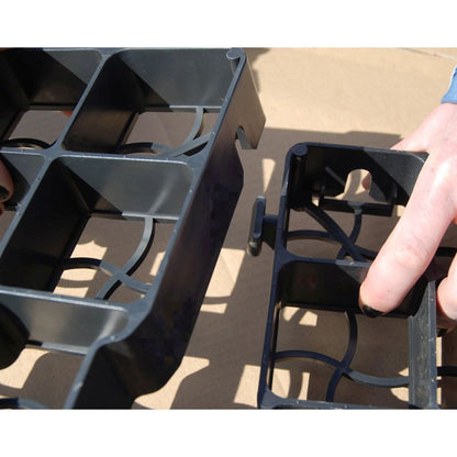 EcoBase the UKs original plastic grid foundation system for garden buildings. Create a base for a garden building using an easy to use EcoBase Fastfit Base Kit. As an environmentally-friendly alternative to paving flags or wet-mix concrete, Ecobase Fastfit is made up of recycled grids that interconnect to provide you with a base for your garden building that is firm, strong, long-lasting and well-drained. Ideal for most 4 x 2m (12 x 6ft) buildings this 32 - grid Base kit'simply snaps together so its quick and easy to lay and is supplied with a sheet of permeable membrane (Approximately: 13ft 1inch x 6ft 6inch) to suppress the growth of weeds. The grids are lightweight so they can be picked up, carried and laid with ease and are robust - providing a firm strong and long-lasting base for your building. Cost effective - the supply and installation of these grids cost less than wet mixed poured concrete. Time saving - the kit requires less preparation time, with no concrete curing time and will be ready to use as soon as positioning is completed. Raised gripping points ensures building remains in place. Long lasting rot proof, chemically inert and re-usable these base kits are ideal for a wide range of uses suitable for most garden sheds, summer houses, play houses, bike stores, potting sheds, pavilions, garden furniture stores, log stores, wheelie bin stands. Simple to use no specialist tools or equipment needed, the drainage perimeter can be filled with pea-gravel to produce a French drain and prevent rain splashing back onto the building.