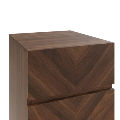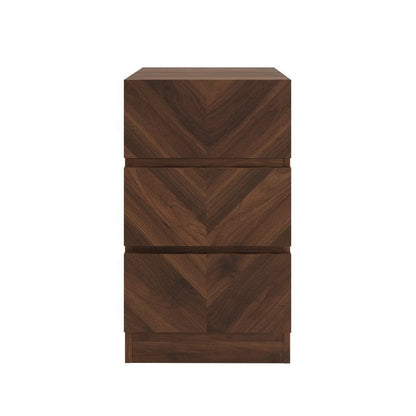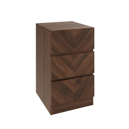 The drawer fronts of this elegant three drawer bedside feature an embellished Herringbone wood-grain design. Three generous, smooth-action, handless drawers offer easy access to your personal belongings. Part of the Catania Collection.