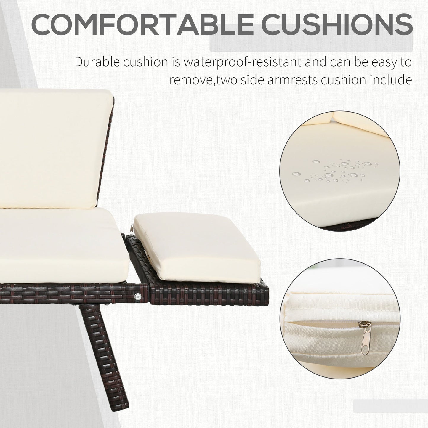 2 Seater 2-in-1 Rattan Convertible Sofa Daybed Brown